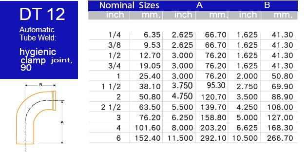 DT12 Automatic Tube Weld (Hygienic Clamp Joint 90° Elbow)