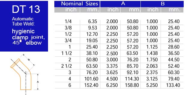 DT13 Automatic Tube Weld (Hygienic Clamp Joint 45° Elbow)