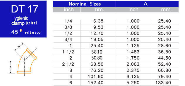 DT17 Hygienic Clamp Joint(45° Elbow)