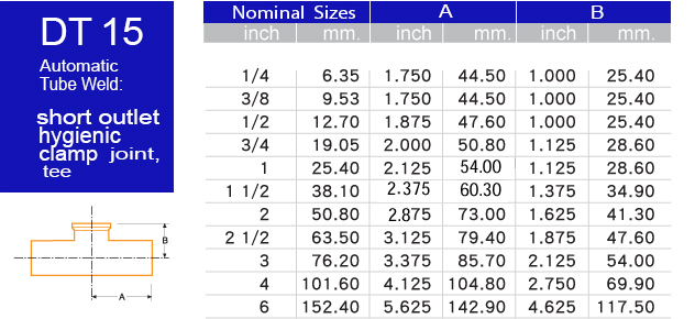 DT15 Automatic Tube Weld (short outlet hygenic clamp joint tee)