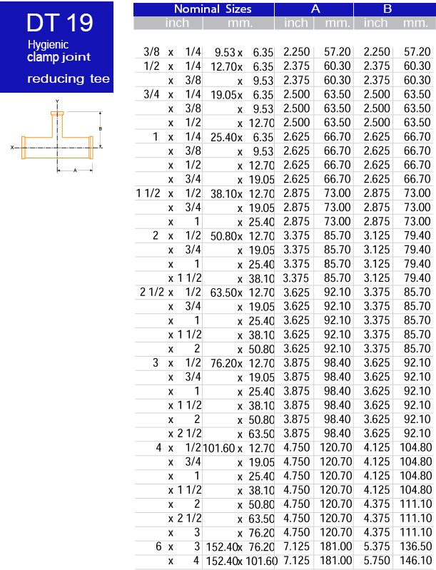DT19 Hygenic Clamp Joint (reducing tee)
