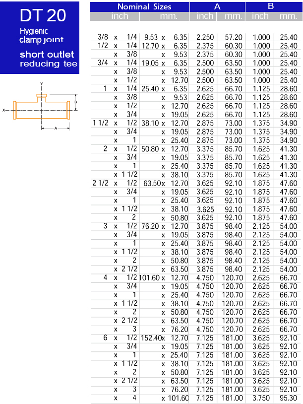 DT20 Hygenic Clamp Joint (short outlet reducing tee)
