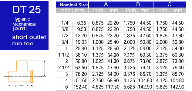 DT25 Hygenic Mechanical Joint (short outlet run tee)