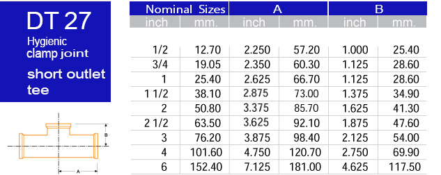 DT27 Hygenic Clamp Joint (short outlet tee)